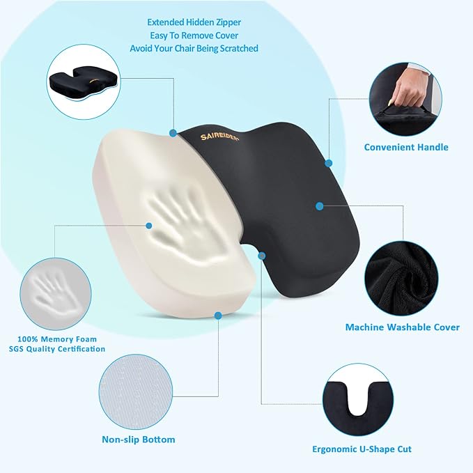 SAIREIDER Seat Cushion and Lumbar Support Pillow